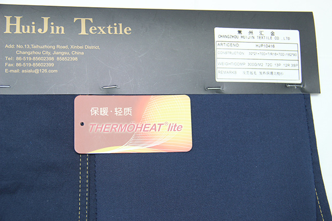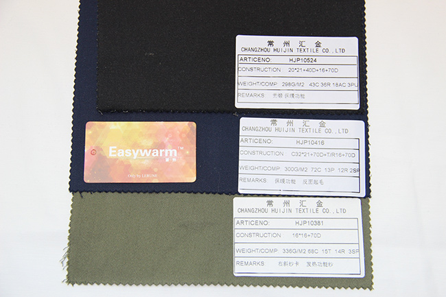 在原料纖維生產中添加大量的親水基團,這樣的纖維制成的面料,能夠迅速捕捉附近的動態水分子,將其吸附到面料表面,在此液氣轉換過程中,主動產生熱能,達到發熱的效果。